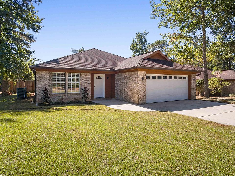 Located central to Daphne, Close to I-10 and Mobile this beautifully updated home has some great features and is NOT subject to Lake Forest Dues. Updated in 2022 this home comes well equipped with new LED lighting; new waterproof LVP; A new front door, new exterior lighting; updated landscaping; freshly painted walls and trim, new exterior ceiling fan on the back porch, blinds on all the windows and even the wall mounted TV and the Refrigerator will remain. As a big added bonus the HVAC duct work has been replaced and updated as well. This open plan has a separate morning room a kitchen bar, wood cabinets with stainless appliances and a big kitchen pantry. The Primary Bedroom has a big attached bathroom that includes double sinks, a large tub and separate shower. The additional bedrooms are nicely sized. This home has a double car garage and a great back yard with a new fence. It's super easy to tour.