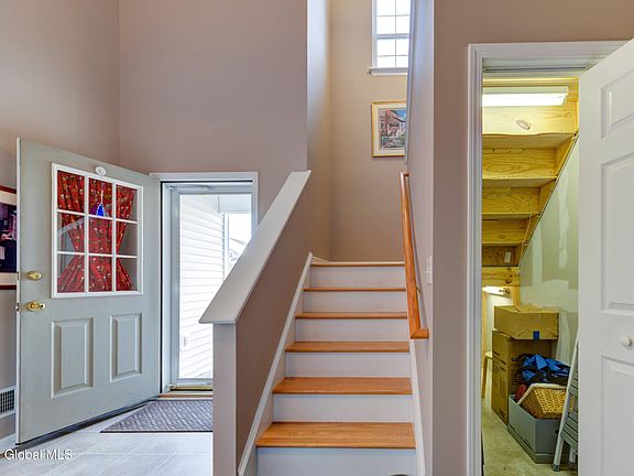 55+ Maintenance free, upper unit condominium. Spacious foyer w/coat closet & storage area. Oversized primary suite w/walk in closet & private bath w/updated shower. 2 additional bedrooms each w/custom built-ins & full bath. The center point of this condo is a great room with open concept kitchen with cabinet/granite updates, dining room & living room w/gas fireplace. Main floor laundry/utility room, private deck overlooking undeveloped land & 1 car garage. Central vacuum, newer furnace, SS appliances, Harwood floors and more. Close to grocery, pharmacy, banking & box stores. Minutes from NYS thruway & Great Sacandaga Lake. Very well maintained home with loads up upgrades.