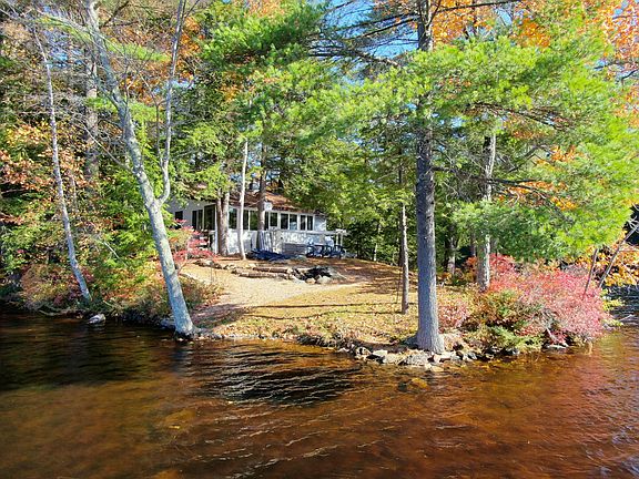 This private sanctuary offers lake life at its best! Quintessential Maine Camp perched on its own peninsula in Sand Pond, part of the Tacoma Lakes. Stunning panoramic water views with 261 feet of owned private water frontage. The peninsula creates a protected cove to the east, ideal for swimming to your float, paddle boating or ice skating in the winter. The western shore is perfect for the ShoreMaster aluminum dock and Pontoon boat included with the sale. This camp offers a secluded feel but is minutes to the local grocery store, farm stand or golf club with pub and golf simulator. Since 2018 the property and camp have undergone major structural updates and tasteful renovations with a focus on maintaining the classic charm of the camp and beauty of the site. The grounds have been manicured with multiple firepits and deck to enjoy the outside. You will enter through the covered porch to find beautiful living space with gorgeous water views all around, updated with insulated pine walls and an easy to clean flooring. You will also find an adorable and well-equipped kitchen and a nicely sized primary bedroom. The camp was being converted into a 1 bedroom so the second bedroom walls have been removed. Sold as is with lots of materials onsite to finish as the new owner desires. The bathroom includes a diverter toilet which can be used in any season plus enclosed outdoor shower. The enclosed porch adds great living space with new windows and gorgeous views of the grounds and lake. Practical updates including wiring and roof. Easy to heat for a day of ice fishing with a new woodstove. Sold furnished with lots of water toys included ready for you to start making your lake memories!