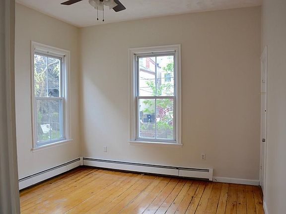 Large sun-filled 1+ bedroom with a separate office space. Spacious living room and dining room separated by french doors. Big bedroom with large closet. Gleaming inlaid hardwood floors throughout, high ceilings, marble fireplace mantle, french doors, ceiling fans, stainless appliances, dishwasher, disposal and granite counters. Common laundry shared with only one other unit! Shared back yard/patio area perfect for grilling! Walking distance to T stop. Available now or 6/1 !
