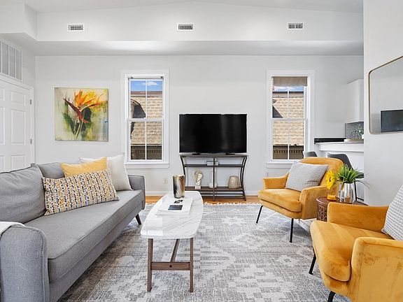 Be the first to live in this just renovated one-bedroom loft-style penthouse in East Boston's historic Eagle Hill. Enter into wide open space with soaring 11-foot ceilings windows on four sides, filling the home with light. Huge living area offers great entertainment space and gleaming original wide-pine flooring throughout. New stainless steel kitchen features great counter and cabinet space, a breakfast bar, and room for a large dining table. The spacious bedroom has a large closet and the updated bath has a glass shower and sliding barn door. Common laundry in the building and a lovely shared back patio are perfect for grilling. All within walking distance to public transport, restaurants, and shops. You'll love this one! First showings at Open House.