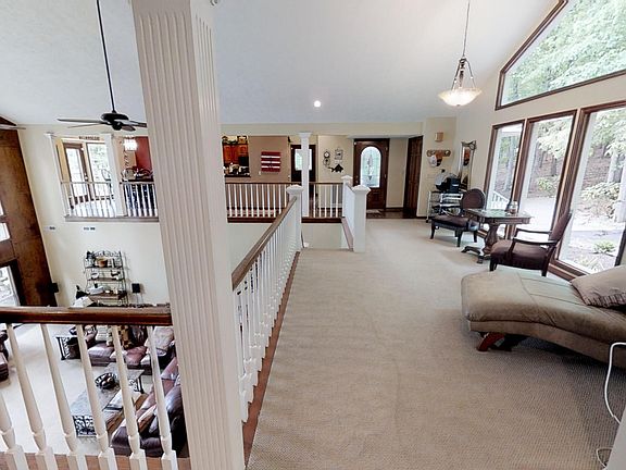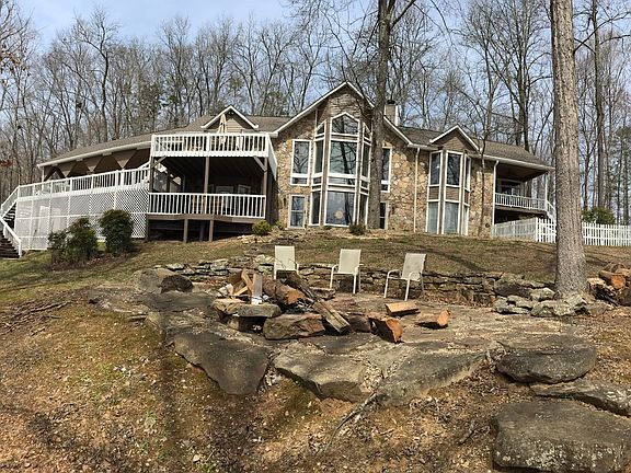 Wonderful lake front home on a very gentle slope 1.13 ac lot. paved driveway, new 2 bay covered dock, fire pit and 3 car carport. Enter into great overlook great room below with lots of glass windows to view the lake. Kitchen, dining room, family room with fireplace, full bath, TV room and bonus room on entry level. Master suite with fireplace Great room, 3 more bedrooms and 2 full baths on lower level. Decks on both levels with easy access to lake. Ready to move in! Deerfield owners has yearly maintenance fees to pay.