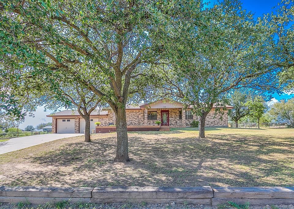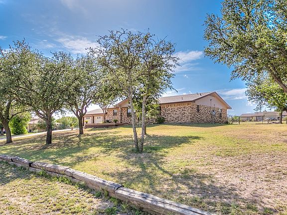 Need parking for your RV or boat? Don't want to pay city taxes. Then this may be the property you have been looking for. Property is minutes from HEB and Wal-Mart but it has all the peace of being outside of the city. Large front patio is great for enjoying those cool fall evenings that are right around the corner. Good sized kitchen with an attached dining area. All of the bedrooms and baths are on one side of the home and kitchen and two living areas are on the other side. This floorplan makes for ideal entertaining. The living room is nice sized and has a fireplace. The den is where you can let your imagination run wild! So many possibilities for this space. Off the den is a covered patio that leads to the very large fenced backyard.
