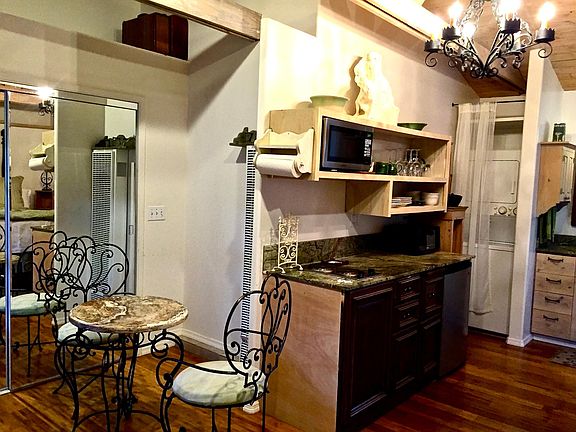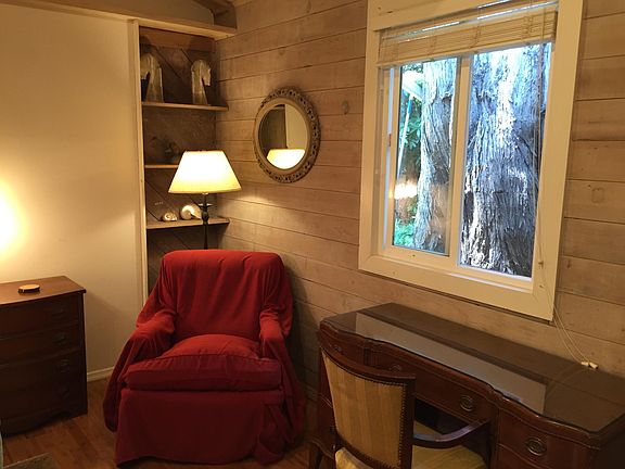 Furnished Private Cozy Studio Near Montecito Beaches Private Studio, 400 sq. ft., nicely furnished, high beam ceilings, white-washed redwood walls, wood floors, queen bed, desk area with desk, large closet with mirror doors, dining area, kitchen facilities including granite counter with cook top, mini-fridge, small appliances and everything you need to live comfortably. Travertine bathroom with bathtub/shower, lots of sunlight. Maytag Washer/Dryer in the studio. Small garden patio w/ table and two chairs, but no yard or garden. Parking next to the entrance for one car. Near beaches - half way between Summerland and Miramar Beach off of North Jameson Lane near Sheffield Exit 101. A creek at the end of our road provides a full-on nature walk down to Fernald and Miramar Beach; nearby is the bike/hiking/ horse trail going over Ortega Ridge to Summerland. There is some freeway noise but has double-paned windows. It's small but cozy, very clean & easy to live in. All utilities included, weekly gardener. Rent $2000/month, available now. Deposit: $2000 Available June 1 If interested, please send information about yourself and your situation. Owner pays all utilities / Renter pays Wifi. Near 101 Sheffield Exit - some freeway noise.