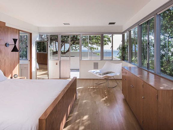 Richard Neutra's "Sten Frenke House" - Historical Landmark #647: One of Neutra's most important pieces of work. Sublime light garnered through continuous ribbons of glass; serene spaces vying for extended visits; a direct connection to the strategically-planted-for-privacy, expansive lot. The home sits at the rear of the gated property presiding over the large, ozonated pool. The property benefits from two, recent restorations (the 1st updated the infrastructure; the 2nd, after rigorous review of UCLA's Neutra archives, restored the home to its original design). The current owner added a Johnston Marklee designed creative work studio w/additional guest accommodations which harmonizes w/and elevates the Sten Frenke. Sited on two lots, the property offers ocean, whitewater and beach-sand views and is proximate to one of the City's most coveted beaches and to the best restaurants, retail, nightlife. Property's energy needs are supplied, in part, through on-site geo-thermal generators. Also included are a three-car garage, hot yoga room and sauna.