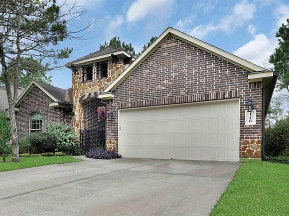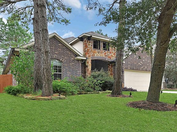 Beautifully maintained open floor split bedroom floorplan home in Jacobs Reserve with stone elevation front, wrought iron gated entry, established landscaped yard with fully fenced backyard and no rear neighbors. Large island kitchen w/granite counters, SS appliances, gas range, breakfast bar, tile floors. Sunny breakfast room and mud room area between kitchen and garage. Spacious family room features high ceilings, gas log fireplace, and arched doorways between rooms which give the house lots of character. Large primary suite has en-suite featuring separate shower , double sinks, garden tub and walk-in closet with views of backyard. Wood floors throughout living and dining areas and halls. Dining room, 2 additional bedrooms with walk-in closets and a full bath complete home. Front yard boasts landscaping lighting, fully fenced backyard with sprinkler system covering entire yard. LOCATED NEAR 1-45 and Woodlands shopping and restaurants.