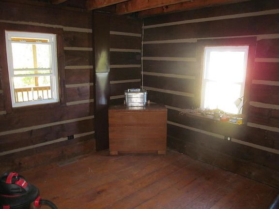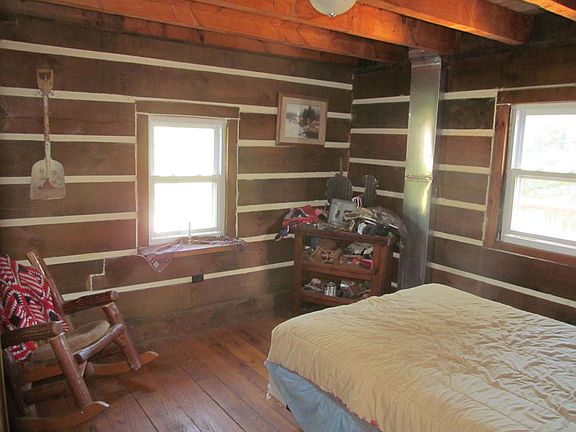Wild life abounds on this 9+ acres secluded & unique log home property. Many recent upgrades: new energy efficient windows, new skylights & quality metal roof all done in 2015! Solid construction w/ concrete poured into block foundation. Open loft can be 4th bedroom, office or rec. rm. Spacious 48x12 back deck. 20x30 car garage w/ 2 car carport attached. 16x8 shed, 2-chicken coupes & 2 stall run-ins. Partially finished Lower Level w/ full bath.