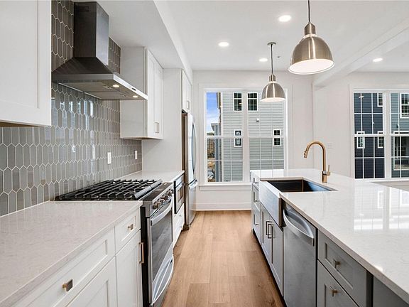 Final opportunity to live right on Meeder Green— just steps from Crossroads shops and restaurants. Move in this fall! This beautifully crafted 4 bedroom, end home offers stunning views of Meeder Green, with a spacious side yard and charming brick exterior on two sides. Inside, the sunlit great room features expansive windows, a cozy fireplace, a private study, and luxury vinyl plank flooring throughout the main level. A private front study adds versatility, while the rear of the home opens to a chef-inspired kitchen and dining area with quartz countertops, soft linen-finished maple cabinetry, stainless steel appliances, full-height tile backsplash, and an oversized eat-in island. Nine-foot ceilings enhance the open feel throughout. Upstairs, the primary suite boasts a private bath and walk-in closet, joined by two additional bedrooms, a full hall bath, and a convenient laundry room. The finished lower-level offers a 4th bedroom & full bath perfect guests.