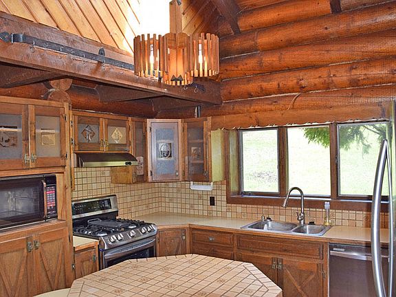 Phenomenal Copeland setting for this stunning log home. Full log const w/ elegant touches that set it apart from the rest! 3012 Sq Ft(Approx 2400 fin. sq ft) 3BD 3BA that features cathedral ceilings, sky lights, intricate timber & rock work, vaulted T&G clgs, rustic rock FP, gourmet Kit w/ new stainless steel appliances, lg island & custom, vintage tile. Private M Suite on upper level has elec chair lift access, walk-in closet & a jetted garden tub w/ custom rock surround you must see to believe! Full, partially finished walk-out bsmnt has bath & Fam Rm (could be bdrm w/ addition of closet.) Tons of unfin space w/ workbenches & storage galore. Full wrap around deck provides abundant outdoor living space. Forever mtn & valley views & sunny S. Exposure!