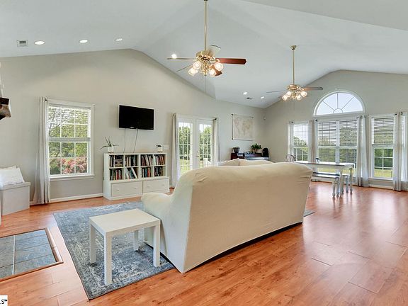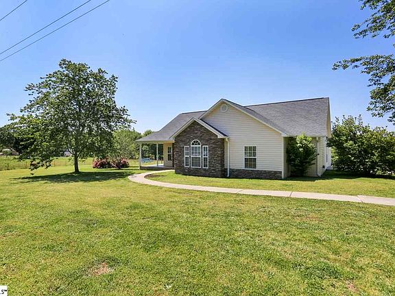 Amazing opportunity for a 2 acre mini farm in Greenville County with a 3 bedroom 2 bath home, built in 2007. New electric fence, new paint throughout and new hot water heater. Inside, you'll find an open living and dining area and a kitchen with granite countertops, tile backsplash and a gas stove. The hallway leads to the spacious master suite with a large handicapped accessible shower and a double vanity, as well as another bedroom and full bath. Laundry has tons of storage. The original garage has been converted to a large third bedroom with a walk-in closet which could also be a game room or second living area. This property is perfect for goats, chickens, ducks, and other farm animals. Also includes a large detached 2 car garage and workshop. Don't miss this opportunity!