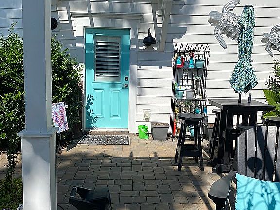 This is a great beach house ready for you to move right in. House has loads of upgrades including granite and LVP flooring. And you will fall in love with the yard. This is the largest lot in the neighborhood and is partially fenced. Gorgeous landscaping, custom patio pavers in yard and driveway, hot tub, grilling area, lounge area and pergola. Plus a full length balcony to watch the sunset. 1 car garage PLUS golf cart spot. Main level has laundry, full bath and 2 bedrooms. One of which is like a 2nd primary with a large walk in closet. Upper level has open concept with dining and living areas open to the beautiful white kitchen with large island. Primary bedroom is spacious and has luxury bath and another walk in closet. This home is in a great location right off Kings Highway but in a small private 1 street community.