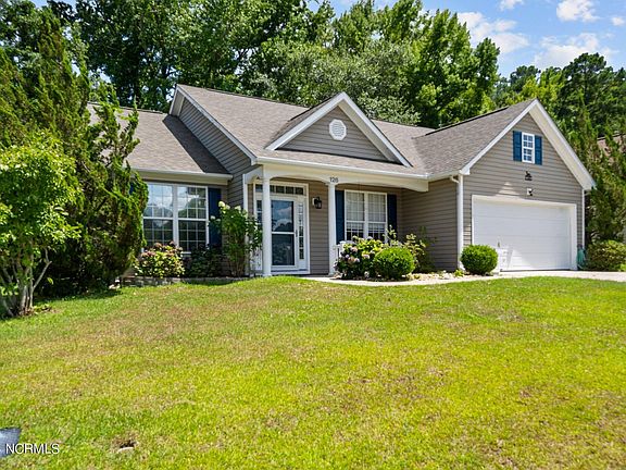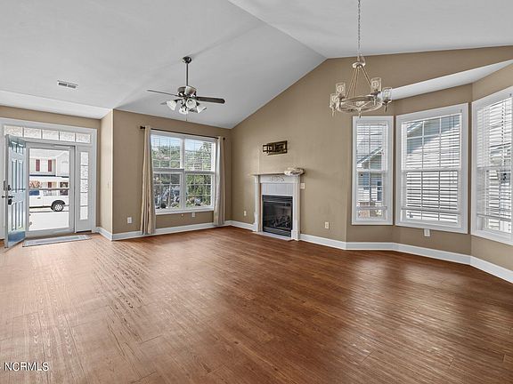Welcome to 126 Meadow View Drive in the desirable Meadows subdivision of New Bern, NC. This charming three-bedroom, two-bathroom home greets you with a paved driveway, a two-car garage, established flower beds, and a covered front porch. Enjoy the convenience of key-less entry as you step into the open living area featuring LVP floors, vaulted ceilings, and a gas fireplace. The living area flows seamlessly into the dining space, which boasts a beautiful bay window seating area. The kitchen offers ample cabinets and counter space, along with stainless-steel appliances. Adjacent to the kitchen, you'll find the laundry room and a utility closet for added convenience. The spacious master bedroom includes a walk-in closet and an ensuite bathroom with a standalone shower, a garden tub for soaking, and a double vanity sink. Two additional carpeted bedrooms with reach-in closets share a full-sized bathroom. Relax in the screened-in porch overlooking the backyard, or fire up the grill on your concrete patio just off the porch. Minutes to Historic Downtown New Bern and a short drive to MCAS Cherry Point.