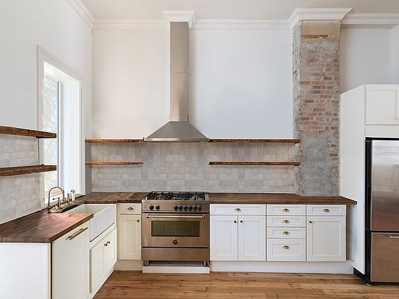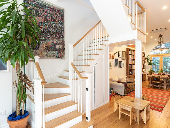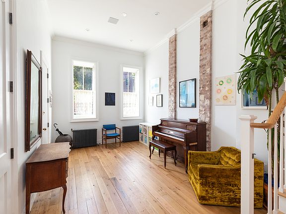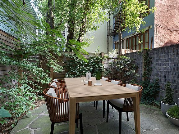 Welcome to 126 Meserole Ave! A completely gut-renovated 2-family gem in a premier Greenpoint location! This impeccably redone prewar brick house exudes charm with its handsome brick façade and architectural details. The unique home is comprised of a spacious owner's duplex plus additional 1,000 sq ft recreation area in the basement, with a peaceful treed and landscaped backyard, and top-floor 2-bedroom rental unit for earning excellent high monthly income. This very quiet residence, set back from the avenue with a large gated front courtyard, has been meticulously designed and appointed for your living comfort. The main level of the owner's duplex is wonderfully open and lofty, accented by generous natural light and extra-high airy ceilings. Entertain guests in the lovely living room with hardwood floors and exposed brick accents, which flows into the stunning open kitchen and dining area that can fit a big table for sit-down meals. The chef will be inspired by such refined appointments as wood block countertops, stainless steel appliances, a farmhouse sink, and custom built-in bookshelves. Tall glass doors brighten the ambience and lead out to the serene backyard garden patio that is extremely private and lush. Ascend the striking staircase to the 2nd-floor sleeping quarters featuring windows on triple exposures, tasteful moldings and plenty of closets. Here you'll find 3 bedrooms including the master, a home office area, washer-dryer, and elegant full bath with claw-foot soaking tub and glass-enclosed tile shower. The full basement, accessible from the interior of the duplex, offers cement floors, recessed lighting, and abundant space for multiple uses as a rec room, family room, game area, etc. On level 3 sits a true 2-bedroom rental unit, brightened by triple exposures and a skylight in the open living/dining area. This nicely renovated apartment, which will command a substantial monthly rent, has a beautiful kitchen, convenient washer and dryer, modern bath, and bedroom with tall windows and space for a workstation. Further enhancing the appeal of this special house is central air conditioning and excellent storage space throughout. Best of all is the address, close to vibrant North Williamsburg, minutes to McCarren Park and waterfront parks in Greenpoint and Williamsburg, near shops and eateries, and under 2 blocks to the subway! Contact us today to schedule your visit.