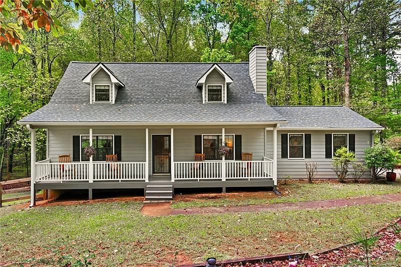 Charming cape cod style home nestled on 2.62+- acres in the heart of West Cobb! Private driveway w/ 2 car garage. Cozy rocking chair front porch w/ lots of privacy! Front yard has area perfect for gardening or playing sports. Interior & exterior home freshly painted! Beautiful kitchen has custom speckled countertops, SS appliances, & peninsula perfect for bar seating. Large sun/keeping room. Living room w/ wood burning stove. Master suite has walk-in closet.