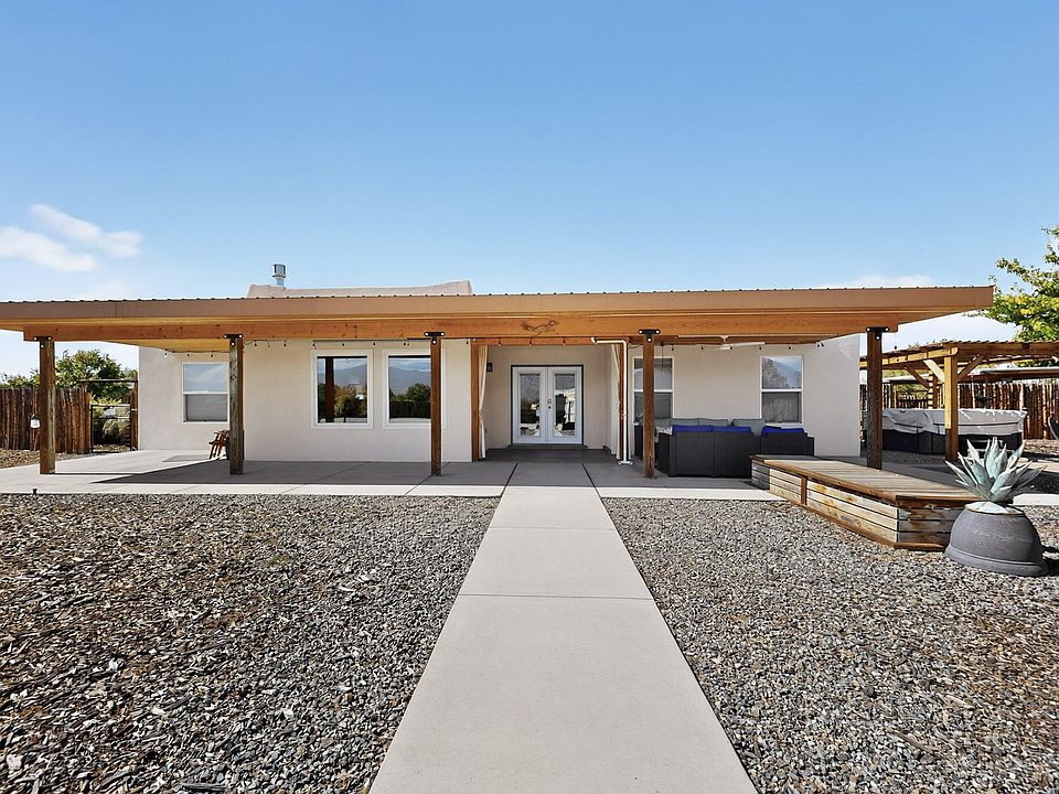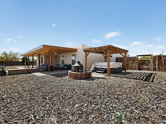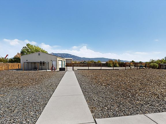 MOTIVATED SELLERS!! This beautiful 4-bed, 2-bath home with an additional flex room offers 2,042 sq ft of comfort and style on a 3/4 acre corner lot. Enjoy breathtaking views of the Sandia Mountains from new Anderson windows and relax in the hot tub after a long day.This home is packed with upgrades, including a new furnace, A/C, On-demand hot water heater, and all new appliances (2024). The exterior features fresh stucco and paint (2023) and owned solar panels for energy efficiency.Car enthusiasts and hobbyists will love the massive 1,200-square-foot heated and cooled shop/garage with 220-amp service and space for 3 cars. It has a fully fenced, a solar-powered gate, and a new well pump installed in 2025 along with a with a recently pumped septic. A Must See! This home has it all!
