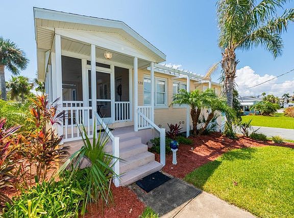 Beachside paradise awaits you! This rare 3 bedroom and 2 bathroom home sits high up on a lush green lot that is only a couple houses away from the ocean. With two beach access points only steps away this would be the perfect vacation home that can be easily rented for extra revenue when not be enjoyed by you. Enjoy the beautiful Florida sun in one of your two outdoor decks! The first large deck overlooks the beautiful backyard that also features a pergola with a pavered sitting area. The second screened porch faces the east and is a perfect place to drink a cup of coffee while enjoying the morning sun. The inside of this spectacular homes feels bright and spacious with an updated kitchen, wet bar, inside laundry and a faux fireplace as the centerpiece. BONUS. New Roof and HVAC!
