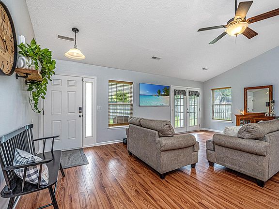 Welcome to this charming 3/2 ranch with a detached heated/cooled 2 car garage. As you enter the home the open concept living area has vaulted ceilings, stunning floors and natural light. The kitchen has a breakfast bar, granite countertops, SS 2021 fridge which conveys, and a spacious pantry. Continuing down the hall you find the laundry closet, the 2nd full bath, and 3 BRs. In the primary BR the en suite has a large walk-in closet and full bath with dual vanities. The paid off Solar Panels and new HVAC are a huge plus. Seller's property tax for 2022 was $1957.12 A $1400 Lender Credit is available and will be applied towards the buyer's closing costs and pre-paids if the buyer chooses to use the seller's preferred lender. This credit is in addition to any negotiated seller concess