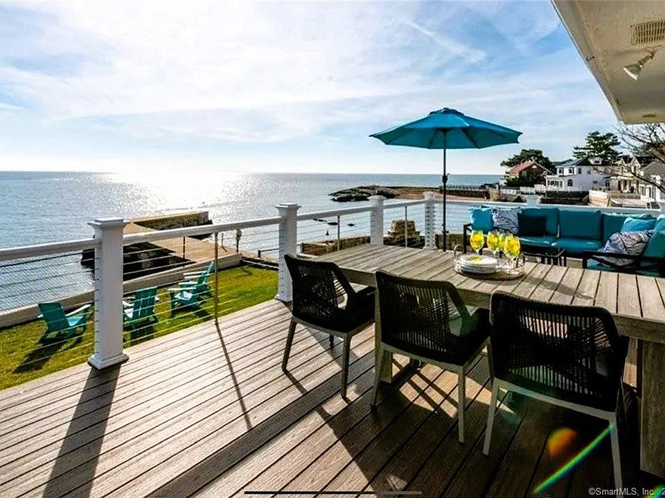 The perfect beach getaway and waterfront oasis is yours for the taking! During the day you can step out to swim, kayak, paddle board, fish, go boating and at night sit by the backyard fire pit and watch the moon rise and ships moving on the water. It's simply pristine; everything inside was repaired or renovated or replaced in the past few years. Located in the hidden gem Morgan Point neighborhood this house is great for commuters, a work-from-home set up, or if you always wanted a house on the water that is easy to maintain. Breathtaking views of LI Sound from the living room (with fireplace), kitchen / dining room, and a care-free Trex deck with sliders from both rooms. Two neighborhood-only private beach access points in a quiet community where homes rarely come up for sale. House comes fully furnished; it's ready for you to make it yours for the summer! 3 bedrooms, one of which is now an office with French doors that allow you to see the riveting waterview. The kitchen is perfect for family gatherings with a big peninsula island and barstool seating for seven, and still has room for a full dining table with an adorable seashell chandelier! Great potential as an AirBnB. Professionally deep cleaned and power washed - truly move-in ready. House is being sold fully furnished, AS IS. NO FLOOD INSURANCE NECESSARY! The house sits high above a seawall and on the rocks of Morgan Point. Elevation certificate and property survey provided. If interested there is a transferable home warranty for appliances, electric, HVAC system, and plumbing.
