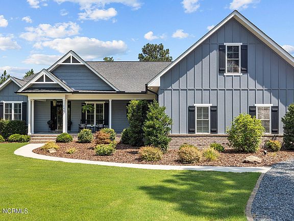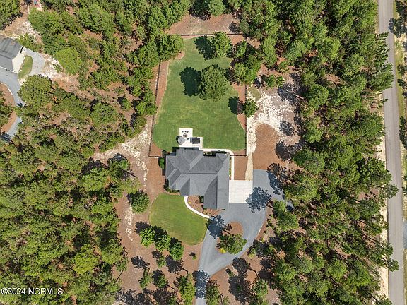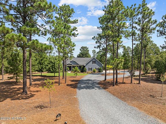 Don't miss out on this beautiful, meticulously kept, custom built home on 5.5 acres inside the gated, private lake community of Seven Lakes West...only 8 miles from Pinehurst, without the city taxes. The home is situated on a private, wooded, corner lot with lush landscaping, firepit and a fenced yard. Inside boasts 3,093 sq ft featuring a large, open gourmet kitchen, combo living room sunroom. Kitchen offers eat in dining, double islands, gas cooktop, wall oven/microwave, custom built cabinetry, granite countertops, wine cooler & walk-in pantry. All bedrooms located on the main level, with a large bonus room, bathroom and storage space upstairs. Master bath features dual vanities, marble countertops, a walk-in, doorless tiled shower, deep soaking tub, large walk-in closet (dressers convey). Main level also offers a study (could be dining room), a spacious laundry room with built-in bench, coat/shoe storage, additional custom cabinetry. The home offers an abundance of light flowing in through the many windows; 10 ft ceiling in living room; hardwood oak floors throughout main living areas, LVP in sunroom, carpet in bedrooms/bonus room; crown molding throughout; plantation shutters. Take advantage of the oversized garage which accommodates oversized vehicles, golf cart, riding mower, work bench, utility sink, refrigerator, storage closet, a generator outlet & an RV 30amp.
