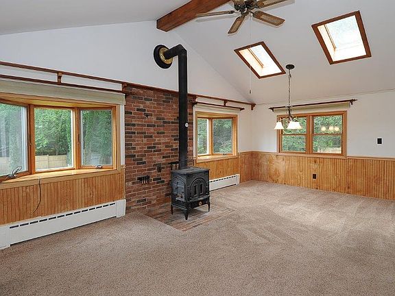 Renovated & move-in ready! Spacious ranch w/newly renovated baths, refinished hdwd flrs, just painted. 200 amp service, 4-yr. old boiler, central air, new vinyl windows. Open plan incl 1st flr family rm w/wood stove. Newly fenced backyard. Add'l fin LL.