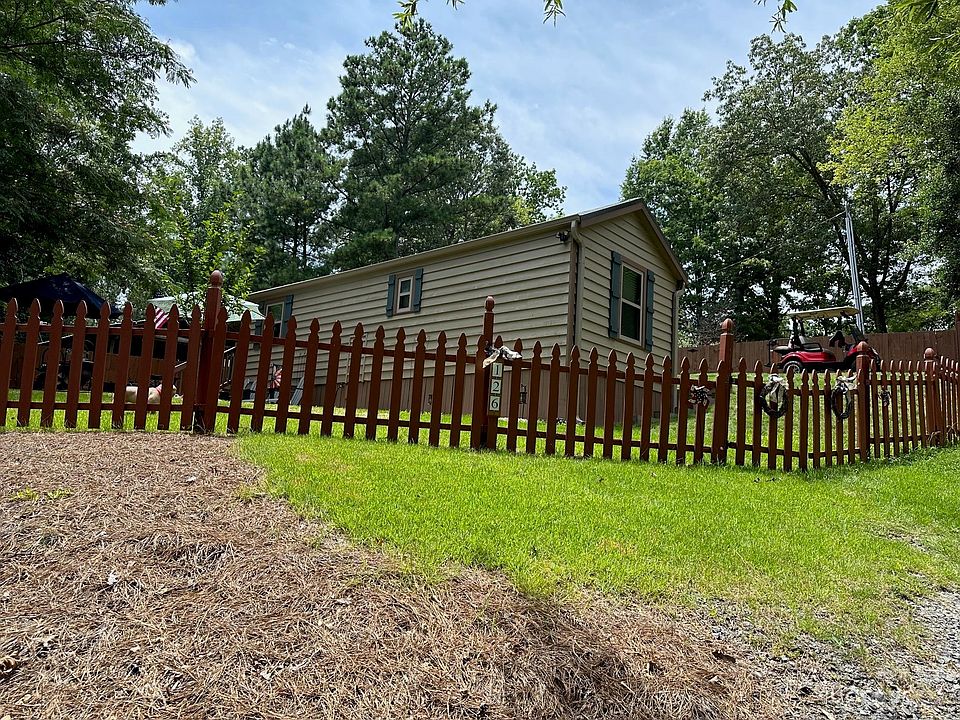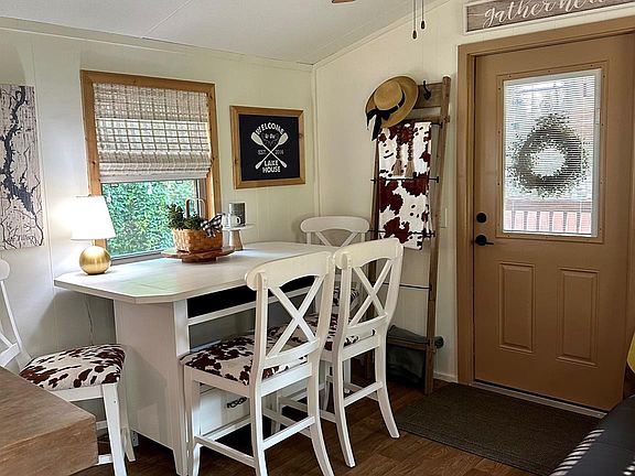 This 2015 park model sits on two lots and has fresh paint inside and out, new gutters and landscaping. Updated inside with a great paver patio and firepit in the front yard. Located in Twin Harbor which offers a community swimming pool, sport courts, boat launch and sand beach. Both the front and back yards are fenced. Ample parking on Trivette Trail which is where you would park at the property. You also have lots of parking on Muskogean Way which this home adjoins. Trivette Trail is a quiet cul-de-sac.