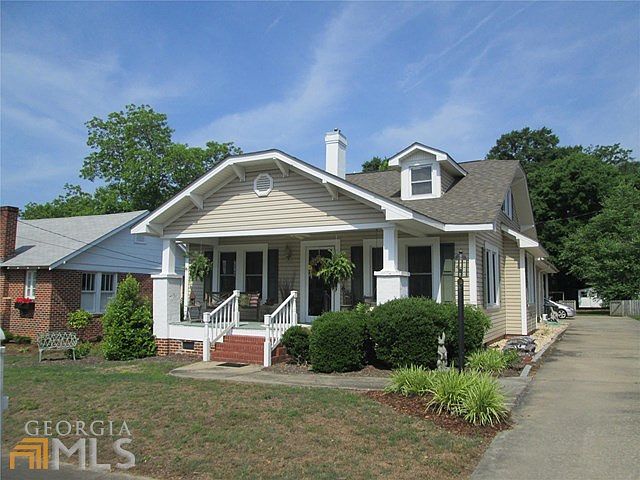 Charming Craftsman, located in Elberton's Historic District is full of character. Large eat-in kitchen, built in table & desk area and large pantry. Just off the kitchen is the laundry room, complete with sink and folding area. Living room, dining room and study area have exposed hardwood floors and beadboard ceilings. Master suite features garden tub, sep shower, double vanities and a VERY LARGE walk in closet. There is another bedroom and bath on main floor. Upstairs has 2 rooms (that can be used as bedrooms) and a full bath. Enjoy the quite evenings relaxing on the covered front porch or large screened in back porch. Be a part of the small town atmosphere by walking to downtown area, churches and the Historic Elbert Theatre.