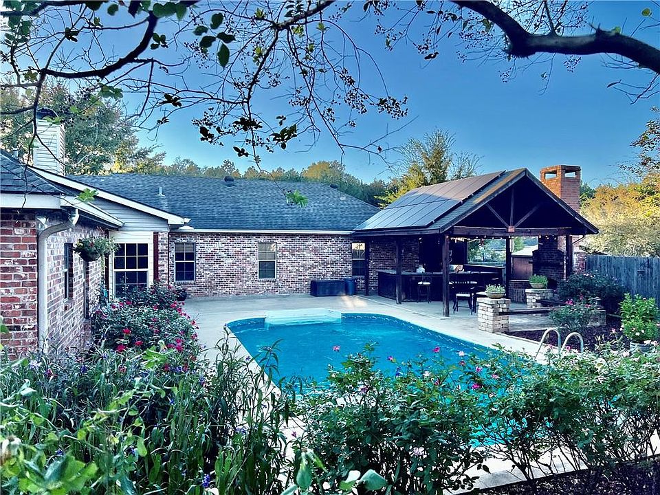 Your search for the ideal Pineville property has ended! Say "hello" to this French Acadian style beauty featuring 4 bedrooms + a bonus room, 2.5 baths, and a backyard oasis worth a staycation. As you enter the foyer, you'll see the formal dining area to the left and the living area with gas fireplace to the right, all with pecan wood flooring, custom moldings, and soaring ceilings. The spacious eat-in kitchen boasts of custom cypress cabinetry, stainless appliances, a new oven, granite countertops, and access to the charming French-style potager garden. One bedroom, the half bath, and a laundry area with storage and folding area are located off the kitchen. The 2 other bedrooms, full bath, and primary suite are located off the living area. You'll love the fresh paint, spacious rooms, tray ceilings, and custom touches throughout. The bonus room with its wood paneled ceilings and its tile floors would make a convenient office or sunroom. The garage is climate-controlled for your special automobile, exercise equipment, or poker game. The backyard is designed for year-round enjoyment featuring a spacious patio area with a large pavilion/bar area (with television, kitchen aid grill, and mini fridge), large custom brick fireplace, and in-ground pool with landscaping. There is even enough yard space for a play area adjacent to the shed. Zoned for JI Barron, PJH, and PHS. You're going to love it here! Schedule your showing today!