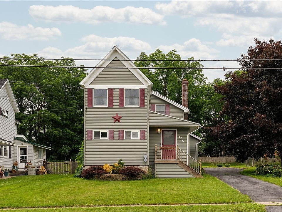 Beautiful home that's ready to be loved by a new owner! This home includes 4 bedrooms and 2 full bathrooms. 1 bedroom and 1 full bathroom are located on the first floor. The country oak kitchen is open with plenty of cabinet space and an adjoining dining room. Off of the kitchen is a good sized laundry room. .Second story has 3 more bdrms and a full bath along with a full walk in storage room. The living room is good sized with lots of opportunities. Updates include; central air, newer furnace and hot water heater. A large partially fenced in back yard, black top driveway, shed, patio area and gazebo/sitting area.