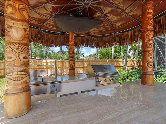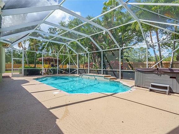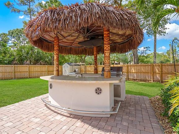 Florida living at its best in this tropical outdoor oasis. Situated on a 1/3-acre cul-de-sac lot with screened salt-water pool/jacuzzi area & huge newly fenced backyard boasting an entertainment tiki with everything needed for an amazing party - drop-down TV, 4-in-1 grill, bar/ice setup, refrigerator & wine refrig - this home offers 4 bdrms with new wood-look tile floors, 2 well-appointed bthrms, large living room along with updated kitchen featuring smart technology, stainless steel appliances. Master suite features tray ceiling, 2 closets & bath with double sinks, separate shower, oversized tub & linen closet. New A/C & new pool pump. Newer water heater. 3 TV's. Walking distance from top-rated schools & activity filled recreational center. Close to airport, beaches, shopping & dining.