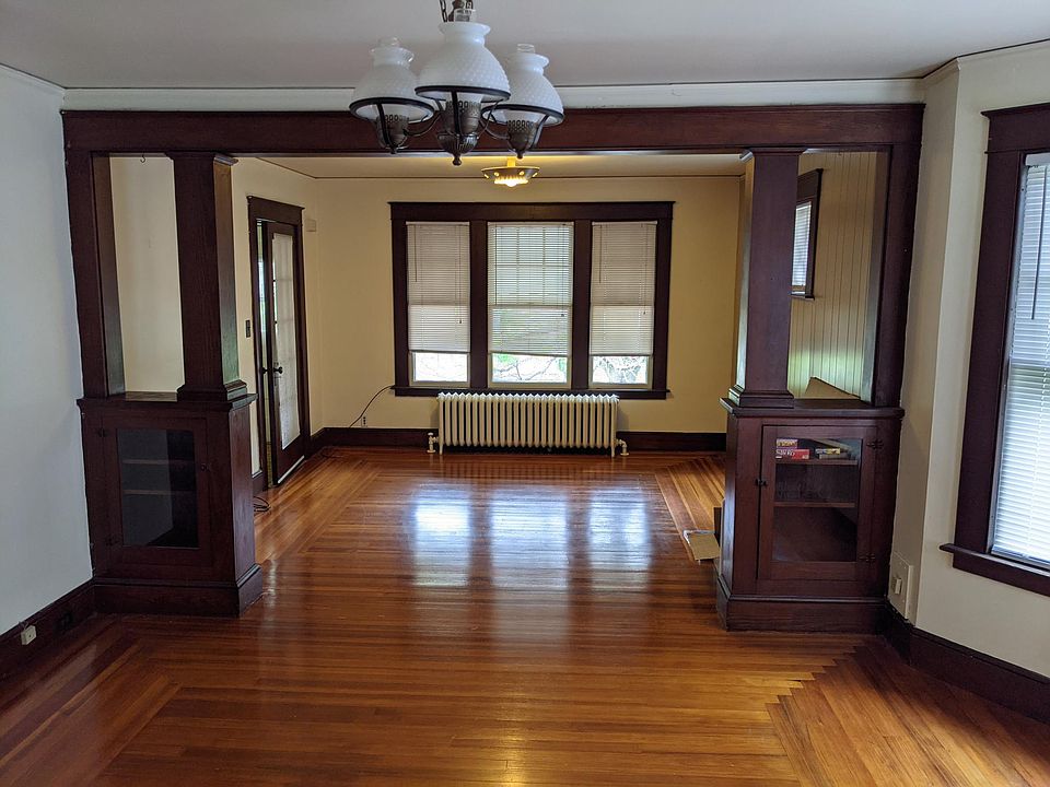 Nice First Floor Apt. in 2 family house, walk to town center, Archie Moore's Blue Moon Michael's Trattoria etc. Close to train station Convenient location between Rt. 91 and the Merrrit Pkwy. Laundry connections in clean, dry walk-out basement. Tile floors in Kitchen and Bath. Newer cabinets and appliances-Gas stove. No carpets! Hardwood floors throughout rest of unit. Gas fired furnace with cast iron radiators for heating. Wallingford electric Co.- lowest rates in the state. Minimun 1 year lease Owner pays water and sewer No smoking On street parking-(senior tenants use driveway).