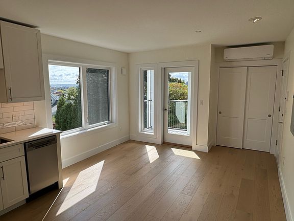 Thoughtfully planned, modern, brand new, energy efficient apartment located in Portland's most desirable neighborhood. Eat-in kitchen features quartz countertops and stainless appliances while the spacious bathroom features tile. Hardwood flooring runs throughout. Windows on all sides fill the space with light and the high ceilings produce an airy vibe. Unit includes a private balcony. All units in this four story building are wheelchair accessible via an elevator and all units have fresh-air ventilation systems and hook-ups for in-unit laundry. Heat pumps provide energy efficient (and quiet) heat and AC. Surrounded by parks and hiking trails, Munjoy Hill is a thriving neighborhood which is walking distance to downtown Portland. Washington Ave's energetic restaurants, bars and shops are steps away from the property while two scenic parks, including a dogs-off-leash area are located within two blocks. A neighborhood community garden and orchard are located on the same block. The property is located on a major bus route, but the street has abundant parking as well as a public high-speed EV charging station. Additional storage (personal possessions and vehicle) options exist on site. Building is pet friendly. 12 Month Lease - with option to terminate early. No smoking. Owner pays water and sewer, tenant pays electric and internet. Option for extra storage. Option for snow ban and vacation (covered) parking. Option to include utilities.