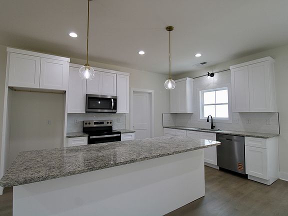Stainless steel appliancesSplit floor planWhite shaker cabinetsLvp floorsTiled wet areas