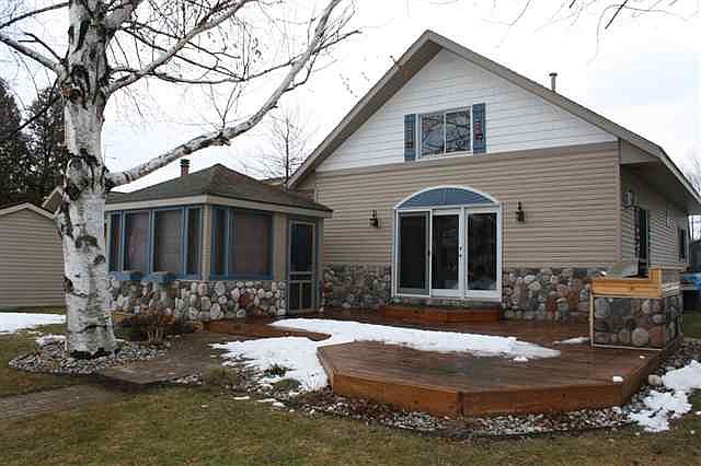 Cabin living at it’s finest in Houghton Lake’s superior Cherokee Village. Wide canal just minutes on boat to the lake. Spacious, cozy and clean all wrapped up into one. Many amenities include sprinkler system, gorgeous professional landscaping, updated furnace, bathrooms on lower and level and upstairs, new roof, stunning stone work on exterior along with vinyl siding. Detached cabana to match home, extensive decking, brand new dockage on water. Sellers have taken excellent pride in their home, detached two car garage and additional shed for more storage. Subject to short sale.