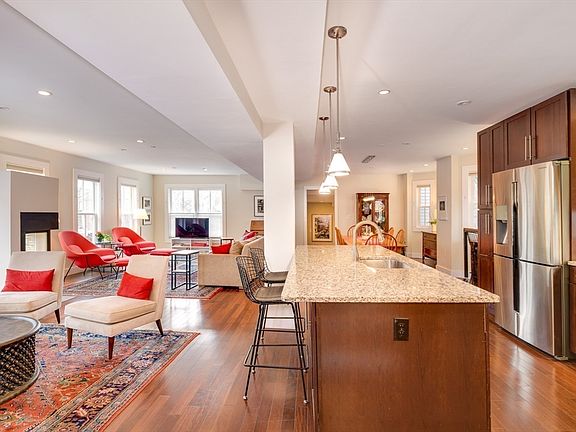 Premier & sought after location on tranquil side street, steps to Davis SQ & Cambridge line. This spacious, light filled, 2068 Sf 3 BD, 3BA condo is as ideal for entertaining as it is for curling up w a good book. The expansive open living/dining/kitchen space is central to the condo, with the bedrooms set off from the main liv space, providing private retreats. Each bedroom has an ensuite or co located bath; each bath is beautifully designed w/ its own unique feature: rain head shower, glass block wall, soaking tub and more. Recessed lighting & Dark hard wd flooring throughout, provide a warm/cozy feeling to the large rooms. The chef's kitchen is a focal point and has rich custom cabinets, oversized granite island, high end Bosch & Bertazonni stainless-steel appliances. The primary suites located in the front & back of the condo, both open to a private covered porch. 2 Car Deeded Parking, in unit Laundry rm & tons of storage & only steps to Davis & Red line. Pristine & Unique.