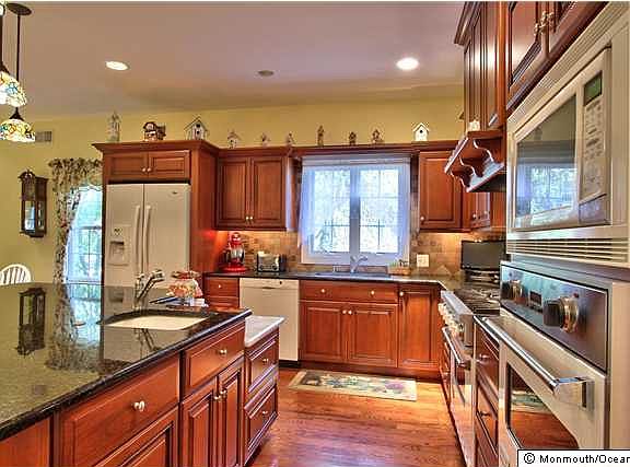 Have the best of both worlds, the shore & Hartshorne Woods just yards away. Home built in 2003 with all the finest materials. Custom tile work, cherry wood cabinets & all fixtures are of highest quality. Kitchen features a 6 burner Viking range with 2 ovens & 2 sinks, perfect for your gourmet cook. The Family Room has a gas fireplace for chilly nights. Home is ready to move into. Large basement ready to finish & lots of storage throughout. Maintenance free exterior. Close to NYC transportation