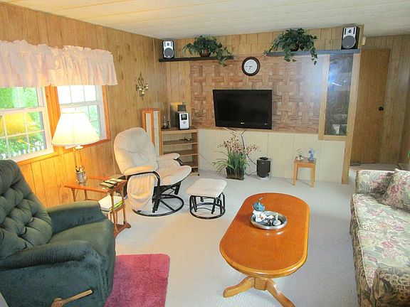 A rare find, 2bd, 2ba in beautiful, 55+ Pine Hill Park with end of the road privacy. Home has had many updates throughout the years, 2007, new vinyl siding, new roof, new insulated windows, new carport and new porch. Main bath was remodeled in 2007 with walk in shower installed and 2nd had a shower stall installed, flooring was also professionally installed in 2007. Home does have central heat/air, large living room, eat in kitchen and large master bedroom. Wonderful sun room off the kitchen expands your living space for entertaining. On the side of the home there is a lovely private yard space which would make a great patio area and behind the home there is a storage shed. Amenities include pool, community building with scheduled activities, water, septic, lawn maintenance, road maintenance and a community feel that can't be denied. All for just 155.00 per month, you can't beat it! Park is a very active, volunteer park, come join the fun.