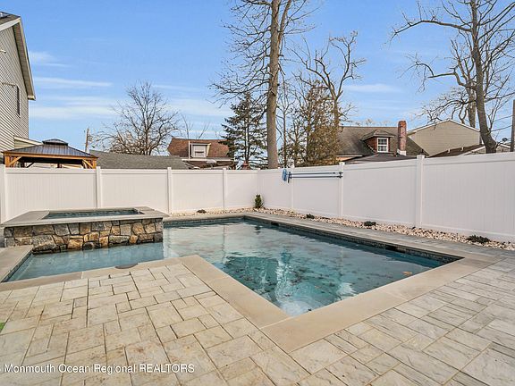 This bright & airy Colonial with 2,016 square feet built in 2019 has it all! 3 extra large bedrooms & 2.5 Baths. Kitchen has s/s appliances, tons of white, soft-close Shaker cabinets, center island & pantry. The Primary Bedroom offers a walk-in closet, a bath w/double sinks & a glass enclosed shower. 2nd floor bath offers a tub and double sinks. Take your summers to the next level while enjoying a new 12' x 24' custom heated gunite inground pool w/a sparkling quartz interior/blue glass tile border framed by paver decking. Enjoy the attached sun ledge & a raised 10-person, 8-jet square spillover spa. The pool comes with smart technology that controls temperature, lighting & pumps. New sod, river rock & new white vinyl fence. Tankless HWH. Attic. Mud & Laundry rooms. 3 blocks to Beach!