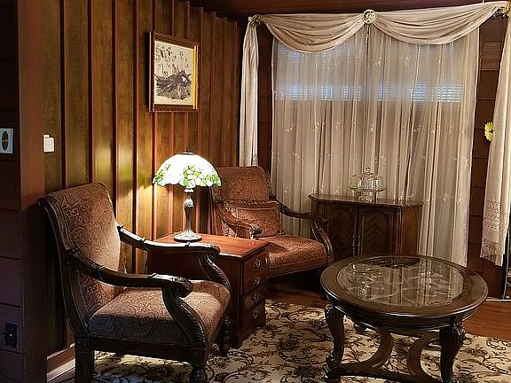 A beautiful 3 or 4 bedroom, 2 bath, Frank Lloyd Wright/mid-century modern home with many unique and lovely features. The focus of the livingroom is a large triangular shaped fireplace with a rock accent wall. The full lower level living area includes a wet bar with the original(working) refrigerator. This home is a great home for a couple or family. The spacious floor plan offers plenty of room for an active family and great areas to entertain guests. The home is nestled in a well shaded lot with many mature trees and beautiful flower and garden areas. The gardens have a beautiful small rock creek that travels through the front of the yard landscape. The creek adds a sense of tranquility on the occasion water is trickling through it. Otherwise, it is a nice dry addition to this beautiful landscape. The house is equipped with a whole home generator installed approximately three years ago. The beautiful master bath is equipped with a new, disability accessible shower. Additional amenities for this beautiful home includes 1 attached carport; 2 separate detached carports;3 storage buildings; and a hot tub on a large wooden deck nestled in some of the mature trees that make this property a true oasis.