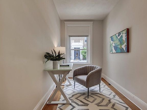 Perfect location in Coolidge Corner on a one way street near Beacon St. This 1+ bedroom is a pleasant corner end unit with hardwood floors and high ceilings. The large bedroom has windows on two sides. The living room with a bay window is good-sized. The kitchen features porcelain floor tile, granite counters, stainless steel LG appliances and solid maple wood cabinets. The bathroom features new porcelain floor tile, tiled shower/tub, granite topped vanity and Kohler fixtures. A cheerful bonus room is perfect for a home office or nursery. Hallway closets reconfigured to create more pantry space. There is common laundry and a very large deeded storage space in the basement. The sellers lease a garage space at 77 Marion Street and can transfer the rental parking. Close to the green line, Longwood Medical area, and fantastic shops and restaurants in Coolidge Corner.