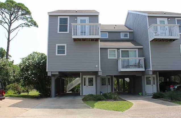 2 BR/ 2.5 townhome located in exclusive Barrier Dunes. Comfortably decorated this townhome overlooks the State Park property but is just a 3-4 minute walk to the beach. The spacious living room has leather sleeper sofa and loveseat, oversized coffee table, side tables and flat screen tv. The patio slider opens onto a spacious deck that overlooks natural vegetation. The dining area has a table w/chairs that seats 4. There is also a half bath. The kitchen has an additional seating area and a bar that seats two people. There is a full size washer and dryer located in the kitchen. The second level has two bedrooms. The master bedroom has a king bed, dresser and private deck. The master bath has a separate shower and tub, along with a double vanity. The second bedroom has a queen bed, private balcony and full bath. Well maintained!