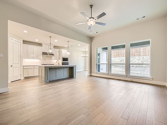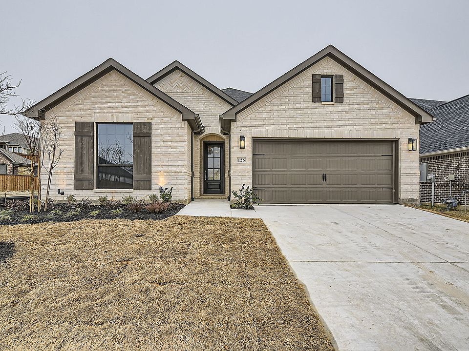 Discover the charm of this amazing one story home nestled in the country setting at Reunion. Entering this home with it's wide hallways and open spaces you will immediately feel home! The stunning herringbone backsplash serves is a focal point for the gourmet kitchen, including a 5-burner gas cooktop, upgraded stainless steel appliances, under cabinet lighting, large furniture style island and a corner walk-in pantry making meal time a breeze. The family room has a wall of windows to let in the natural light. Create your workplace sanctuary in the study with French glass doors. Rich hardwood floors grace the entry way, kitchen, family room and study. The main suite is located in the back of the home for extra privacy. With the vaulted ceiling and bay window in the bedroom, the bath boasts dual vanities, must see walk-in closet, luxurious soaker tub and walk-in shower- go ahead and make this your private oasis. Completing this home are upgraded carpet and tile, covered outdoor living space and a two-car garage with extra storage space. Don't miss this opportunity to make this home yours!! Reunion neighborhood is part of the award winning NISD school district with bus transportation. Easy freeway access to Fort Worth and DFW airport makes this a must-see. Start making memories in your new American Legend Home!
