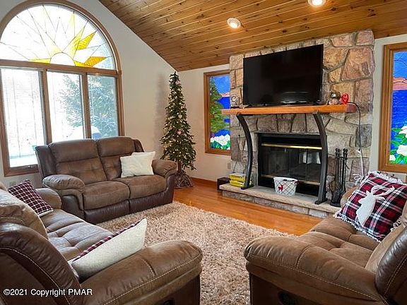 BEAUTY TO CATCH THE EYE! Don't miss out on this Warm and Welcoming Contemporary Home Located Near Major Pocono Attractions. This 3 bedroom 2 Bath with Loft Home Boasts Gorgeous Hardwood Flooring Throughout, Large Comfortable Living Room with Stone Wood Burning Fireplace and Hand Made Mantle, Delightful Kitchen with NEW Dishwasher and Refrigerator, Dining Area. Enjoy The Bright 3 Season Room with private deck, Beautiful Custom Stain Glass Windows, New Roof and Vinyl Siding, 4 A/C Units PLUS So Much More!! ALSO Includes Furniture. DON'T MISS YOUR OPPORTUNITY to Own This ONE of a KIND Home in the Pocono Mountains.