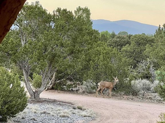 2.4 acres in La Senda with views of the Sangre de Cristo and Jemez Mountains. and a barn: complete with 3 stalls/wash rack/pack room/auto water system/storage/2 corrals. Property is boundary and cross fenced with 5 foot horse fence and excellent fenced yard area for dogs. Adjacent to trail system that leads out to DOE land. One story southwestern style house that has been completely remodeled. Inside, diamond plaster finish, tile/wood/laminate flooring. Lighted nichos, insulated windows, central evaporative cooling. The kitchen is lovely - designed by Nona Stone, cherry wood cabinets, granite tiled counter tops. Double ovens, gas cooktop, sub zero refrigerator/freezer, wine cooler and dishwasher are all Viking appliances! Baking center, huge center island, country kitchen sink and prep sink, wood floors. This is a great kitchen. Two jack and jill bedrooms. Master suite has a super large walk in closet, nice master bath and walks out to deck in back courtyard. Large mud room/laundry room w/sink. Outside courtyard sports more than views; an outdoor kitchen, complete with fridge, sink and grill w/burners. Kiva fireplace adds charm. Grassed area and gardens on watering system. Behind courtyard is a path leading to the barn/corral. Tons of storage. Lots of value in this property. Home Inspection on file.