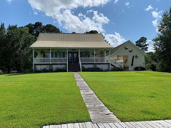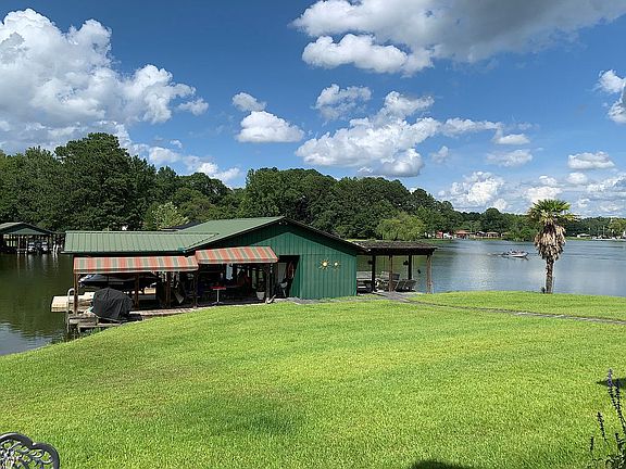 Cozy waterfront lake house in protected cove. 3 BR / 2-1/2 bath with two (2-car) carports; private boat ramp; covered boathouse with three lifts and storage. Home has open floor plan with full length porches across front and back; Option to purchase furnishings and outside decor; Appointment only showings and proof of pre-approval required. Manicured landscape with 180deg view of lake. Deep water (9-11ft) with good fishing.