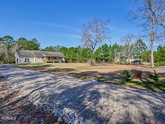 Welcome home to your private, peaceful slice of heaven! This home sits on 1.24 acres of land with no HOA. New LVP floors were just installed as well as fresh paint. A split floor plan gives extra privacy for the master suite with a walk in closet and spacious bathroom with dual vanities. There is a fenced in area of the backyard perfect for kids and dogs to play, and a great cookout set up of the 2 car garage for adults to hang out around the firepit and grill! Enjoy the peace and quiet on the covered front porch and possibly catch a glimpse of some wildlife- deer, turkeys, and all different species of birds! The N Topsail Island bridge is just a quick drive from the house. Enjoy beach days without the traffic of getting on HWY 17!