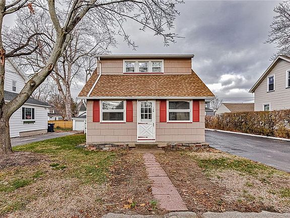 Super charming colonial with East Irondequoit schools. You will love the large renovated kitchen, all appliances stay. Hardwoods throughout this move in ready home with upper level refinished beautifully. Two bedrooms, including master with big closet and the updated bath finish off the clean upstairs. Don't let the square footage fool you because the lower level has finished space not included that makes the home feel much bigger than it is. The massive 2 car detached garage has tons of space including a 2nd floor loft area. Improvements include: refinished hardwoods, kitchen remodel, roof (20'), h20 heater (20'), fresh paint throughout, vinyl windows and 200 AMP electric (20'). Lots to love for this price!