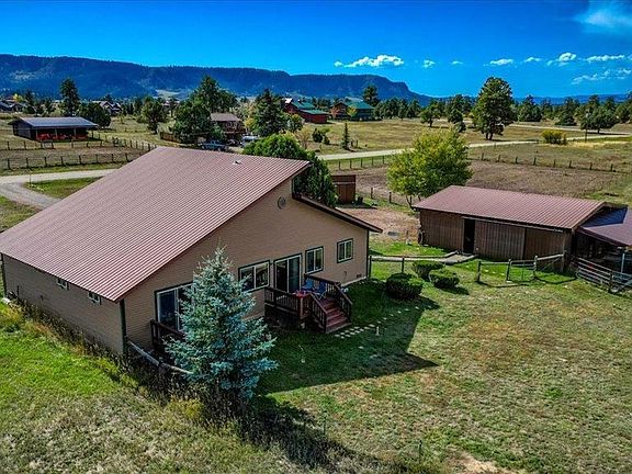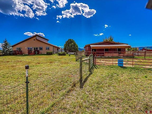 Welcome to your Colorado Dream Home! This stunning 5+ acre property is perfect for horse enthusiasts, featuring fenced and cross-fenced pastures, a barn with three stalls and hay storage, and a round pen. Enjoy one-story living with a spacious primary suite conveniently located on the main floor. The outdoor arena is ideal for training, while the backyard is securely fenced for dogs. With super insulated 12" exterior walls, this 5-star energy-efficient home ensures comfort year-round. The fully usable, level lot boasts quality grass for grazing and breathtaking Rocky Mountain views from the back deck, including the iconic Pagosa Peak. Located just 1.7 miles from the main shopping center & hospital, you’ll also have access to the community rec center and HOA amenities. The attached two-car garage and level driveway with southern exposure provide easy access throughout the year.