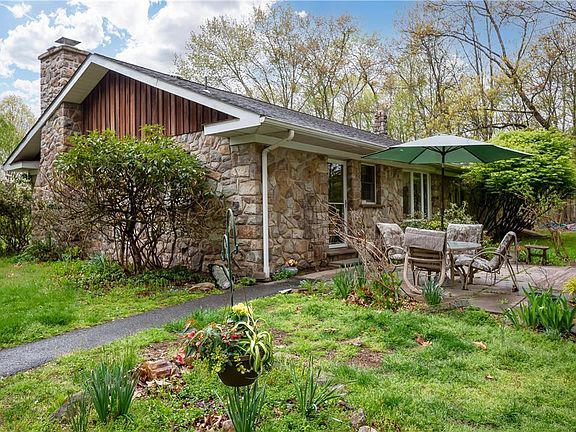 Many options with this beautiful 10+ acre property… farmette or country estate. The quality of construction and details on the exquisite custom-built, solid stone ranch home is unquestionable. Solid wood floors, slate entry hall, cherry paneling, 2 stone fireplaces. The very thoughtful floor plan includes a formal entry hall, large sunken living room, family room and formal dining room for gracious entertaining. The eat-in kitchen with S/S appliances opens to a welcoming stone patio. 3 bedrooms with plenty of closet space throughout. There’s also a lovely screened gazebo for shaded outdoor entertaining and a 3-stall barn, pasture and fenced pen. Bring your horses, goats, sheep, chickens! Choice of oil heat or outdoor wood-burning furnace. Acres of timber will provide plenty of free fuel!