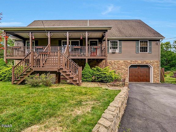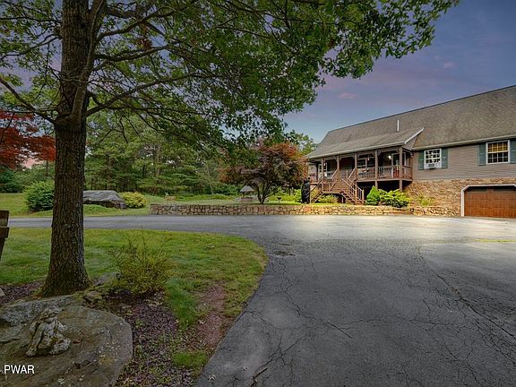 Discover your ideal retreat nestled in the picturesque Pocono Mountains. This inviting 3-bedroom home rests on 4 acres of tranquil land, offering privacy and natural beauty. A circular driveway and a charming 1-car garage welcome you to this serene property.Inside, the lower level boasts a spacious recreation room featuring a free-standing propane stove, perfect for cozy gatherings or quiet relaxation with walkout access to the backyard to enjoy the natural surroundings. The main level unfolds with a family room, living room, and dining area, each offering comfortable spaces for everyday living and entertaining. A distinctive stone fireplace graces the family room, creating a warm ambiance for intimate evenings. The primary bedroom on this level includes an ensuite bath for added convenience and privacy.Upstairs, two generous bonus rooms await your personal touch, ideal for additional bedrooms, offices, exercise room or creative spaces. Outside, a back deck overlooks the wooded surroundings, providing a peaceful retreat to enjoy nature. A covered front porch offers a welcoming spot to greet guests or unwind with a morning coffee.Beautifully landscaped grounds enhance the natural charm of this property, ensuring a serene and picturesque setting year-round. With low taxes and minimal dues, this home represents an exceptional opportunity to enjoy the beauty and tranquility of the Pocono Mountains, whether as a primary residence or a vacation getaway.