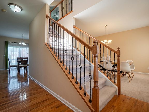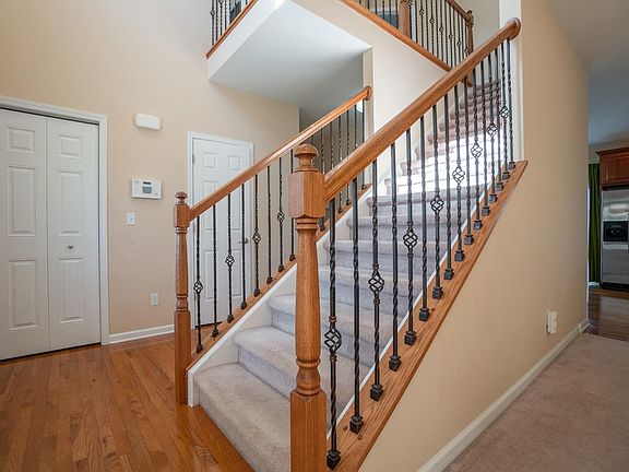 Beautiful home in a desirable subdivision! Bright, 2-story foyer, oak stairway w/ wrought iron spindles. Kitchen w/ cherry cabinets, granite counter tops, center island, & pantry. All appliances stay including reverse osmosis under kitchen sink & HE washer purchased in 2017! Oak hardwood floors in kitchen & foyer area. Ceramic floors in all baths. Great room, wired for surround sound, has gas FP w/ wood mantle & tile surround. 12 x 14, freshly stained deck. Master bdrm has walk-in closet. Master bath has a double vanity, stand-up shower & jetted tub. Full daylight basement ready to be finished if desired...exterior walls studded & insulated w/ rough-in bathroom & ejector pit installed w/ pump. Whole house humidifier & radon mitigation system in place. HE hot water heater & furnace. LED lighting throughout. HE, cordless, top-down/bottom-up closure Levolor cellular shades on windows. This amazing home is well-maintained and MOVE-IN ready! Seller offering 1 yr HSA Home Warranty!